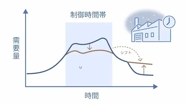 生産設備の稼働時間をずらすことで、電力需要を抑制する |