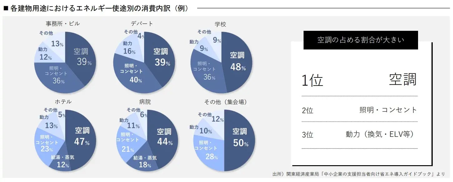 しかし、空調は建物全体のエネルギー消費において最も大きな割合を占める設備です。そのため、企業の電気代を削減するという点では、高い効果を期待できるでしょう。